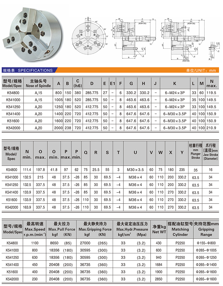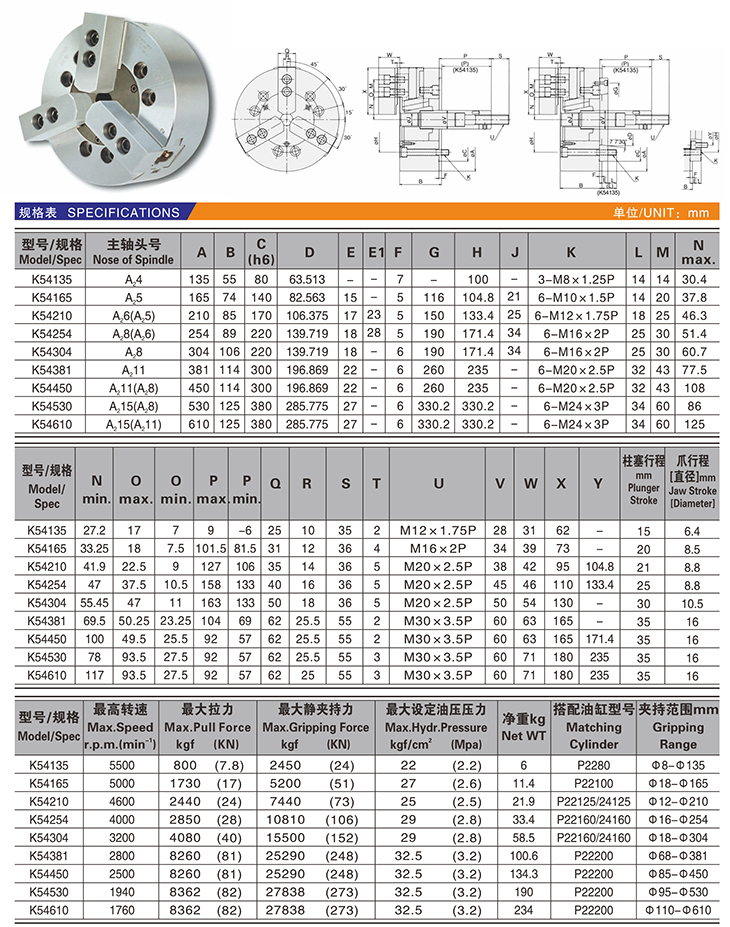 KL54~K54三爪高速中實動力卡盤